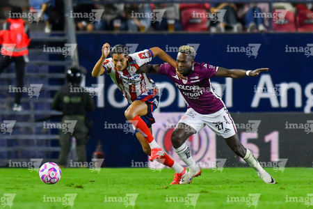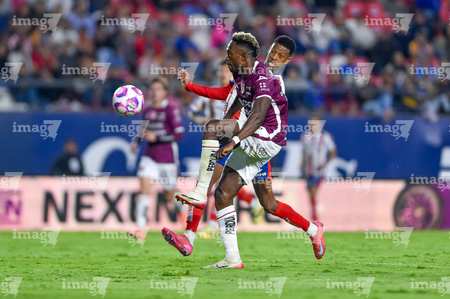 San Luis Potosí, San Luis Potosí, 26 de octubre de 2025. Diber Cambindo (D), durante el partido correspondiente a la jornada 15 del torneo Apertura 2025 de la Liga BBVA MX, entre el Atlético San Luis y los Rayos del Necaxa, realizado en el estadio Alfonso Lastras. Foto: Imago7/ Olimpia Puga