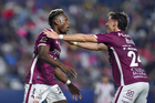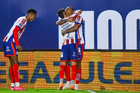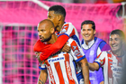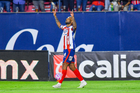 San Luis Potosí, San Luis Potosí, 26 de octubre de 2025. Sebastien Salles-lamonge anota gol, durante el partido correspondiente a la jornada 15 del torneo Apertura 2025 de la Liga BBVA MX, entre el Atlético San Luis y los Rayos del Necaxa, realizado en el estadio Alfonso Lastras. Foto: Imago7/ Olimpia Puga