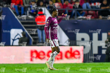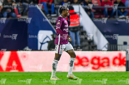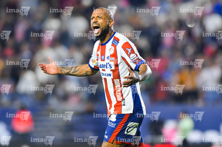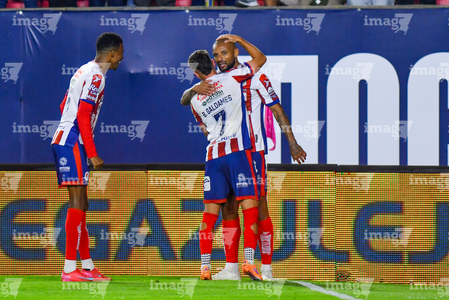 San Luis Potosí, San Luis Potosí, 26 de octubre de 2025. Kevin Ante en festejo de gol, durante el partido correspondiente a la jornada 15 del torneo Apertura 2025 de la Liga BBVA MX, entre el Atlético San Luis y los Rayos del Necaxa, realizado en el estadio Alfonso Lastras. Foto: Imago7/ Olimpia Puga