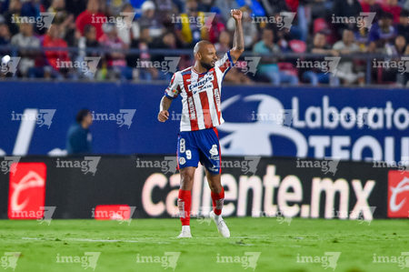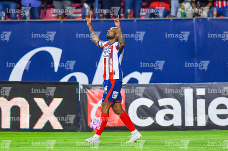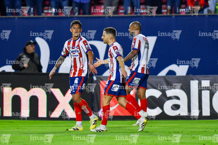 San Luis Potosí, San Luis Potosí, 26 de octubre de 2025. Andrés Sánchez en festejo, durante el partido correspondiente a la jornada 15 del torneo Apertura 2025 de la Liga BBVA MX, entre el Atlético San Luis y los Rayos del Necaxa, realizado en el estadio Alfonso Lastras. Foto: Imago7/ Hugo Martinez