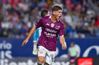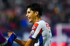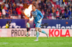 San Luis Potosí, San Luis Potosí, 26 de octubre de 2025. Franco Rossano en festejo, durante el partido correspondiente a la jornada 15 del torneo Apertura 2025 de la Liga BBVA MX, entre el Atlético San Luis y los Rayos del Necaxa, realizado en el estadio Alfonso Lastras. Foto: Imago7/ Hugo Martinez
