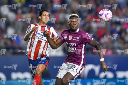 San Luis Potosí, San Luis Potosí, 26 de octubre de 2025. Daniel Guillén y Diber Cambindo, durante el partido correspondiente a la jornada 15 del torneo Apertura 2025 de la Liga BBVA MX, entre el Atlético San Luis y los Rayos del Necaxa, realizado en el estadio Alfonso Lastras. Foto: Imago7/ Hugo Martinez