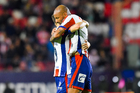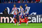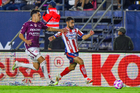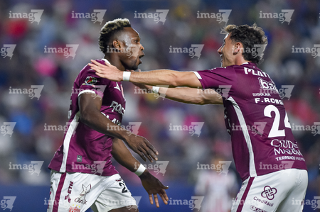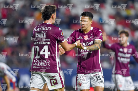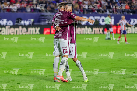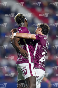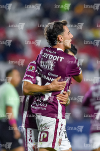 San Luis Potosí, San Luis Potosí, 26 de octubre de 2025. Franco Rossano y Pavel Pérez en festejo, durante el partido correspondiente a la jornada 15 del torneo Apertura 2025 de la Liga BBVA MX, entre el Atlético San Luis y los Rayos del Necaxa, realizado en el estadio Alfonso Lastras. Foto: Imago7/ Hugo Martinez