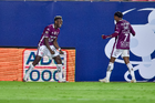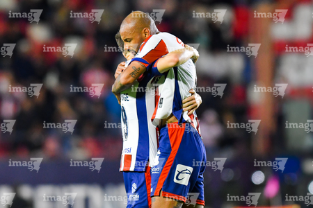 San Luis Potosí, San Luis Potosí, 26 de octubre de 2025. Benjamín Galdames y Joao Pedro en festejo de gol, durante el partido correspondiente a la jornada 15 del torneo Apertura 2025 de la Liga BBVA MX, entre el Atlético San Luis y los Rayos del Necaxa, realizado en el estadio Alfonso Lastras. Foto: Imago7/ Olimpia Puga