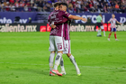 San Luis Potosí, San Luis Potosí, 26 de octubre de 2025. Kevin Ante en festejo de gol, durante el partido correspondiente a la jornada 15 del torneo Apertura 2025 de la Liga BBVA MX, entre el Atlético San Luis y los Rayos del Necaxa, realizado en el estadio Alfonso Lastras. Foto: Imago7/ Hugo Martinez