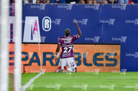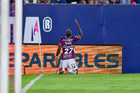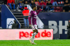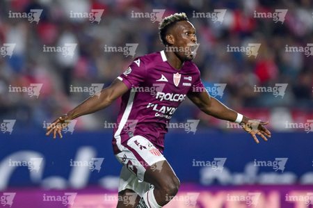 San Luis Potosí, San Luis Potosí, 26 de octubre de 2025. Sebastien Salles-lamonge en festejo de gol, durante el partido correspondiente a la jornada 15 del torneo Apertura 2025 de la Liga BBVA MX, entre el Atlético San Luis y los Rayos del Necaxa, realizado en el estadio Alfonso Lastras. Foto: Imago7/ Olimpia Puga