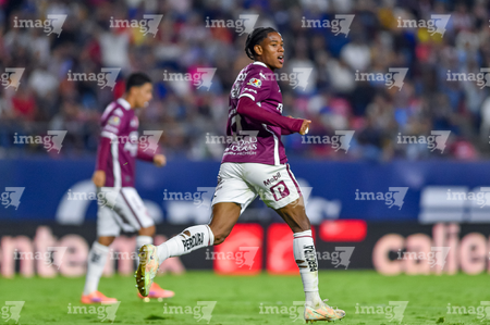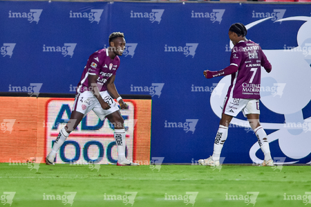 San Luis Potosí, San Luis Potosí, 26 de octubre de 2025. Diber Cambindo en festejo de gol, durante el partido correspondiente a la jornada 15 del torneo Apertura 2025 de la Liga BBVA MX, entre el Atlético San Luis y los Rayos del Necaxa, realizado en el estadio Alfonso Lastras. Foto: Imago7/ Hugo Martinez
