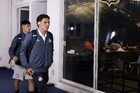 Puebla, Puebla, 31 de octubre de 2025. Eduardo Navarro y Gabriel Fernandez, durante el partido correspondiente a la jornada 16 del torneo Apertura 2025 de la Liga BBVA MX, entre el Club Puebla y la Máquina Celeste del Cruz Azul, realizado en el estadio Cuauhtémoc. Foto: Imago7/ Mireya Novo