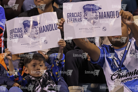 Puebla, Puebla, 31 de octubre de 2025. Homenaje por el fallecimiento de Manuel Lapuente, durante el partido correspondiente a la jornada 16 del torneo Apertura 2025 de la Liga BBVA MX, entre el Club Puebla y la Máquina Celeste del Cruz Azul, realizado en el estadio Cuauhtémoc. Foto: Imago7/ Mireya Novo