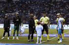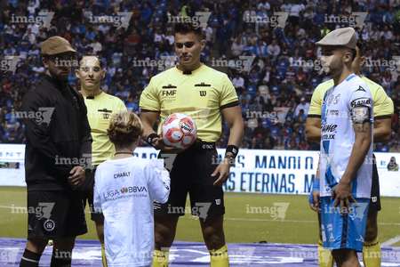 Puebla, Puebla, 31 de octubre de 2025. Protocolo, durante el partido correspondiente a la jornada 16 del torneo Apertura 2025 de la Liga BBVA MX, entre el Club Puebla y la Máquina Celeste del Cruz Azul, realizado en el estadio Cuauhtémoc. Foto: Imago7/ Mireya Novo