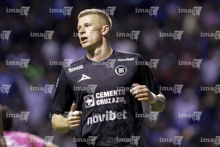 Puebla, Puebla, 31 de octubre de 2025. Mateusz Bogusz en festejo de gol, durante el partido correspondiente a la jornada 16 del torneo Apertura 2025 de la Liga BBVA MX, entre el Club Puebla y la Máquina Celeste del Cruz Azul, realizado en el estadio Cuauhtémoc. Foto: Imago7/ Mireya Novo