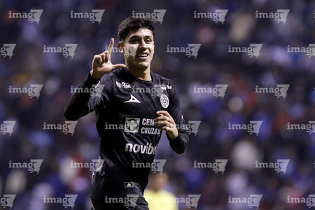Puebla, Puebla, 31 de octubre de 2025. Jeremy Marquez en festejo de gol, durante el partido correspondiente a la jornada 16 del torneo Apertura 2025 de la Liga BBVA MX, entre el Club Puebla y la Máquina Celeste del Cruz Azul, realizado en el estadio Cuauhtémoc. Foto: Imago7/ Mireya Novo