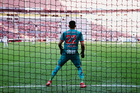Guadalajara, Jalisco, 1 de noviembre de 2025. Camilo Vargas en lamento, durante el partido correspondiente a la jornada 16 del torneo Apertura 2025 de la Liga BBVA MX, entre los Rojinegros del Atlas y los Diablos Rojos del Toluca, realizado en el estadio Jalisco. Foto: Imago7/ Juan Carlos Cubeyro.