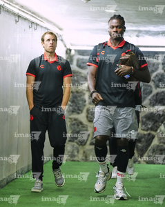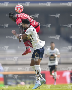 Ciudad de México, 2 de noviembre de 2025. Frank Boya y Jorge Ruvalcaba, durante el partido correspondiente a la jornada 16 del torneo Apertura 2025 de la Liga BBVA MX, entre los Pumas de la UNAM y los Xolos de Tijuana, realizado en el estadio Olímpico Universitario. Foto: Imago7/ Etzel Espinosa