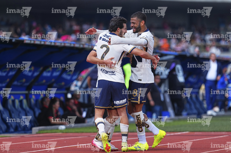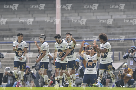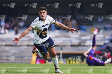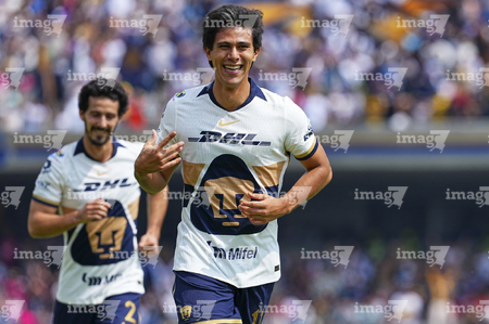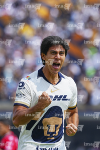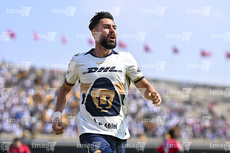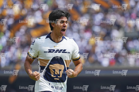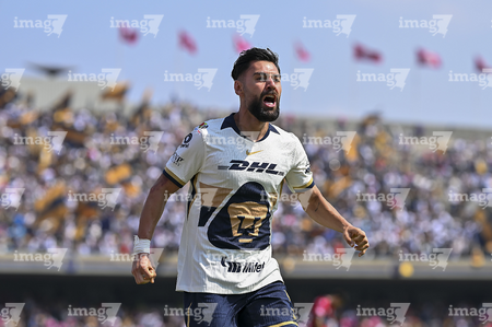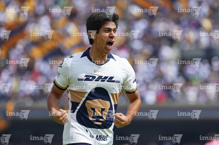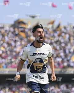 Ciudad de México, 2 de noviembre de 2025. José Juan Macías en festejo de gol durante el partido correspondiente a la jornada 16 del torneo Apertura 2025 de la Liga BBVA MX, entre los Pumas de la UNAM y los Xolos de Tijuana, realizado en el estadio Olímpico Universitario. Foto: Imago7/ Etzel Espinosa