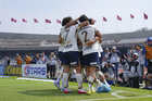 Ciudad de México, 2 de noviembre de 2025. Alvaro Angulo en festejo de gol, durante el partido correspondiente a la jornada 16 del torneo Apertura 2025 de la Liga BBVA MX, entre los Pumas de la UNAM y los Xolos de Tijuana, realizado en el estadio Olímpico Universitario. Foto: Imago7/ Manlio Contreras