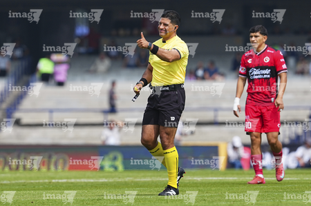 Ciudad de México, 2 de noviembre de 2025. Maximiliano Quintero Hernández, árbitro central, durante el partido correspondiente a la jornada 16 del torneo Apertura 2025 de la Liga BBVA MX, entre los Pumas de la UNAM y los Xolos de Tijuana, realizado en el estadio Olímpico Universitario. Foto: Imago7/ Manlio Contreras