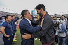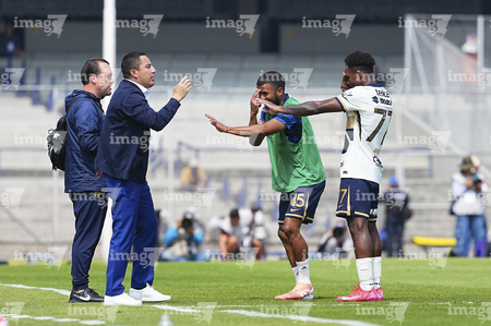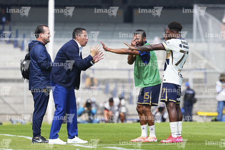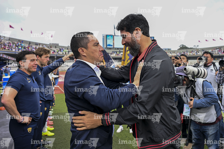 Ciudad de México, 2 de noviembre de 2025. Efraín Juárez, director técnico y Sebastián "Loco" Abreu, director técnico, durante el partido correspondiente a la jornada 16 del torneo Apertura 2025 de la Liga BBVA MX, entre los Pumas de la UNAM y los Xolos de Tijuana, realizado en el estadio Olímpico Universitario. Foto: Imago7/ Etzel Espinosa