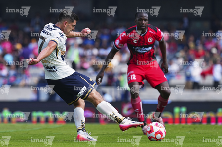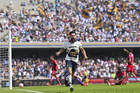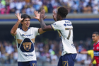 Ciudad de México, 2 de noviembre de 2025. Rodrigo López anota gol, durante el partido correspondiente a la jornada 16 del torneo Apertura 2025 de la Liga BBVA MX, entre los Pumas de la UNAM y los Xolos de Tijuana, realizado en el estadio Olímpico Universitario. Foto: Imago7/ Manlio Contreras