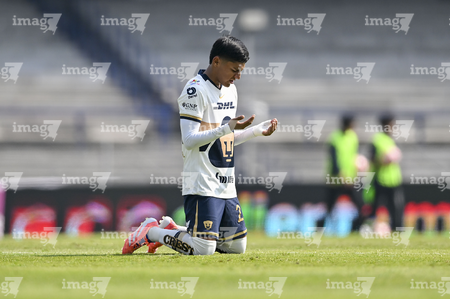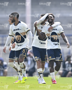 Ciudad de México, 2 de noviembre de 2025. Kevin Castañeda en festejo de gol, durante el partido correspondiente a la jornada 16 del torneo Apertura 2025 de la Liga BBVA MX, entre los Pumas de la UNAM y los Xolos de Tijuana, realizado en el estadio Olímpico Universitario. Foto: Imago7/ Manlio Contreras