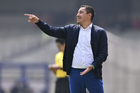 Ciudad de México, 2 de noviembre de 2025. Sebastián "Loco" Abreu, director técnico, durante el partido correspondiente a la jornada 16 del torneo Apertura 2025 de la Liga BBVA MX, entre los Pumas de la UNAM y los Xolos de Tijuana, realizado en el estadio Olímpico Universitario. Foto: Imago7/ Manlio Contreras