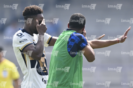 Ciudad de México, 2 de noviembre de 2025. Adonis Preciado y Nathan Silva, durante el partido correspondiente a la jornada 16 del torneo Apertura 2025 de la Liga BBVA MX, entre los Pumas de la UNAM y los Xolos de Tijuana, realizado en el estadio Olímpico Universitario. Foto: Imago7/ Etzel Espinosa