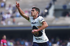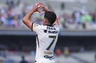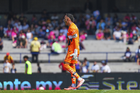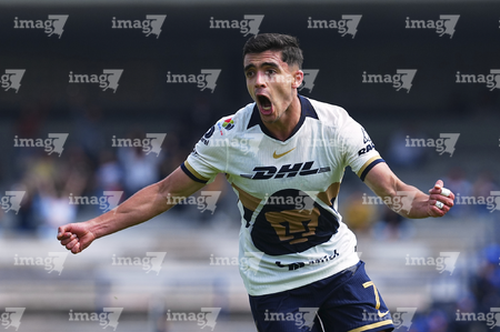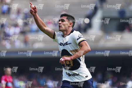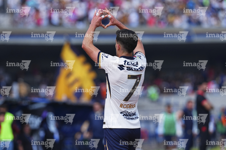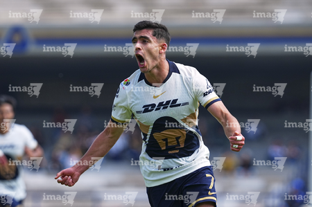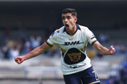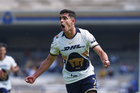 Ciudad de México, 2 de noviembre de 2025. Rodrigo López en festejo de gol, durante el partido correspondiente a la jornada 16 del torneo Apertura 2025 de la Liga BBVA MX, entre los Pumas de la UNAM y los Xolos de Tijuana, realizado en el estadio Olímpico Universitario. Foto: Imago7/ Manlio Contreras