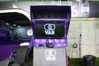 Mazatlán, Sinaloa, 7 de noviembre de 2025. Cabina del sistema de video asistente del árbitro VAR, durante el partido correspondiente a la jornada 17 del torneo Apertura 2025 de la Liga BBVA MX, entre los Cañoneros del Mazatlán FC y los Rayos del Necaxa, realizado en el estadio El Encanto. Foto: Imago7/ Rogelio Dávila