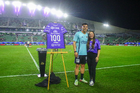 Mazatlán, Sinaloa, 7 de noviembre de 2025. Facundo Almada recibió un reconocimiento por 100 partidos, durante el partido correspondiente a la jornada 17 del torneo Apertura 2025 de la Liga BBVA MX, entre los Cañoneros del Mazatlán FC y los Rayos del Necaxa, realizado en el estadio El Encanto. Foto: Imago7/ Rogelio Dávila