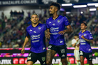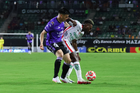 Mazatlán, Sinaloa, 7 de noviembre de 2025. Edgar Bárcenas y Franco Rossano, durante el partido correspondiente a la jornada 17 del torneo Apertura 2025 de la Liga BBVA MX, entre los Cañoneros del Mazatlán FC y los Rayos del Necaxa, realizado en el estadio El Encanto. Foto: Imago7/ Rogelio Dávila