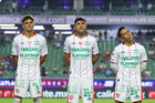 Mazatlán, Sinaloa, 7 de noviembre de 2025. Kevin Ante, Fabio Gomes y Mauro Lainez, durante el partido correspondiente a la jornada 17 del torneo Apertura 2025 de la Liga BBVA MX, entre los Cañoneros del Mazatlán FC y los Rayos del Necaxa, realizado en el estadio El Encanto. Foto: Imago7/ Sandra Bautista