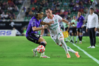 Mazatlán, Sinaloa, 7 de noviembre de 2025. Cristian Calderón "Chicote", durante el partido correspondiente a la jornada 17 del torneo Apertura 2025 de la Liga BBVA MX, entre los Cañoneros del Mazatlán FC y los Rayos del Necaxa, realizado en el estadio El Encanto. Foto: Imago7/ Rogelio Dávila