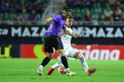 Mazatlán, Sinaloa, 7 de noviembre de 2025. Fabio Gomes y Agustin Palavecino, durante el partido correspondiente a la jornada 17 del torneo Apertura 2025 de la Liga BBVA MX, entre los Cañoneros del Mazatlán FC y los Rayos del Necaxa, realizado en el estadio El Encanto. Foto: Imago7/ Sandra Bautista