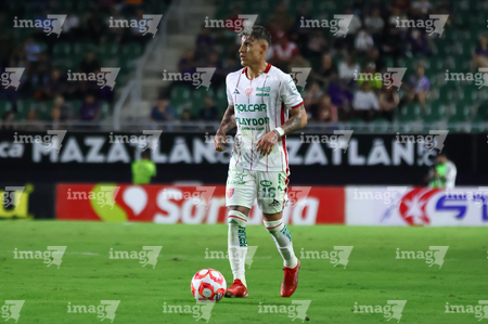 Mazatlán, Sinaloa, 7 de noviembre de 2025. Bryan Colula, durante el partido correspondiente a la jornada 17 del torneo Apertura 2025 de la Liga BBVA MX, entre los Cañoneros del Mazatlán FC y los Rayos del Necaxa, realizado en el estadio El Encanto. Foto: Imago7/ Rogelio Dávila