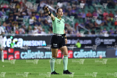 Mazatlán, Sinaloa, 7 de noviembre de 2025. Katia Itzel García, árbitra central, durante el partido correspondiente a la jornada 17 del torneo Apertura 2025 de la Liga BBVA MX, entre los Cañoneros del Mazatlán FC y los Rayos del Necaxa, realizado en el estadio El Encanto. Foto: Imago7/ Rogelio Dávila
