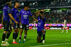Mazatlán, Sinaloa, 7 de noviembre de 2025. Jugadores de Mazatlán FC en festejo de gol, durante el partido correspondiente a la jornada 17 del torneo Apertura 2025 de la Liga BBVA MX, entre los Cañoneros del Mazatlán FC y los Rayos del Necaxa, realizado en el estadio El Encanto. Foto: Imago7/ Sandra Bautista