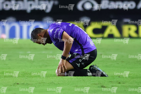 Mazatlán, Sinaloa, 7 de noviembre de 2025. Joaquín Esquivel en lamento, durante el partido correspondiente a la jornada 17 del torneo Apertura 2025 de la Liga BBVA MX, entre los Cañoneros del Mazatlán FC y los Rayos del Necaxa, realizado en el estadio El Encanto. Foto: Imago7/ Rogelio Dávila