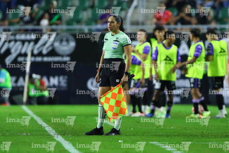 Mazatlán, Sinaloa, 7 de noviembre de 2025. Karen Díaz, árbitra asistente, durante el partido correspondiente a la jornada 17 del torneo Apertura 2025 de la Liga BBVA MX, entre los Cañoneros del Mazatlán FC y los Rayos del Necaxa, realizado en el estadio El Encanto. Foto: Imago7/ Rogelio Dávila