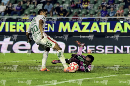 Mazatlán, Sinaloa, 7 de noviembre de 2025. Portigoles, durante el partido correspondiente a la jornada 17 del torneo Apertura 2025 de la Liga BBVA MX, entre los Cañoneros del Mazatlán FC y los Rayos del Necaxa, realizado en el estadio El Encanto. Foto: Imago7/ Rogelio Dávila