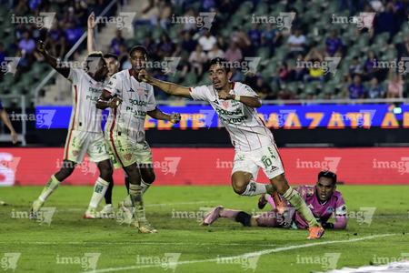 Mazatlán, Sinaloa, 7 de noviembre de 2025. Ricardo Monreal anota gol, durante el partido correspondiente a la jornada 17 del torneo Apertura 2025 de la Liga BBVA MX, entre los Cañoneros del Mazatlán FC y los Rayos del Necaxa, realizado en el estadio El Encanto. Foto: Imago7/ Sandra Bautista