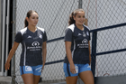 Puebla, Puebla, 21 de septiembre de 2025. Alyssa Oviedo e Ianne López, durante el partido correspondiente a la jornada 12 del torneo Apertura 2025 de la Liga BBVA MX Femenil, entre el Club Puebla y la Máquina Celeste del Cruz Azul, realizado en el Club Alpha. Foto: Imago7/Mireya Novo
