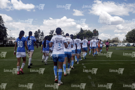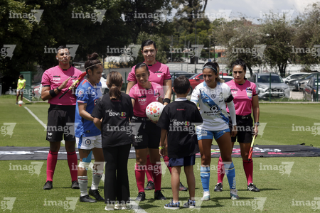 Puebla, Puebla, 21 de septiembre de 2025. Protocolo, durante el partido correspondiente a la jornada 12 del torneo Apertura 2025 de la Liga BBVA MX Femenil, entre el Club Puebla y la Máquina Celeste del Cruz Azul, realizado en el Club Alpha. Foto: Imago7/Mireya Novo