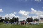 Puebla, Puebla, 21 de septiembre de 2025. Embajadores, durante el partido correspondiente a la jornada 12 del torneo Apertura 2025 de la Liga BBVA MX Femenil, entre el Club Puebla y la Máquina Celeste del Cruz Azul, realizado en el Club Alpha. Foto: Imago7/Mireya Novo