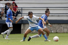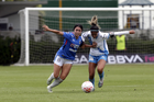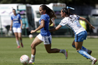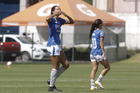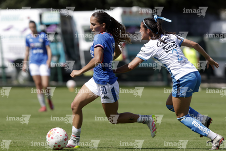 Puebla, Puebla, 21 de septiembre de 2025. Solange Lemos y Sheila Vivanco, durante el partido correspondiente a la jornada 12 del torneo Apertura 2025 de la Liga BBVA MX Femenil, entre el Club Puebla y la Máquina Celeste del Cruz Azul, realizado en el Club Alpha. Foto: Imago7/Mireya Novo