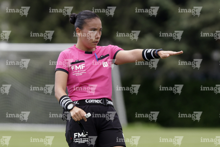 Puebla, Puebla, 21 de septiembre de 2025. Brenda Cristina Ramírez, árbitra central, durante el partido correspondiente a la jornada 12 del torneo Apertura 2025 de la Liga BBVA MX Femenil, entre el Club Puebla y la Máquina Celeste del Cruz Azul, realizado en el Club Alpha. Foto: Imago7/Mireya Novo