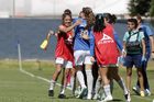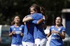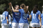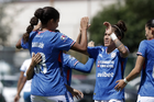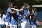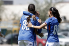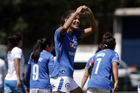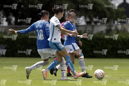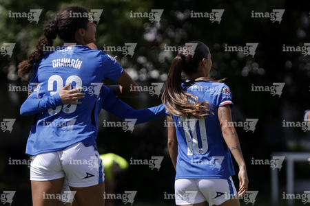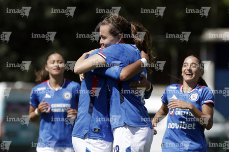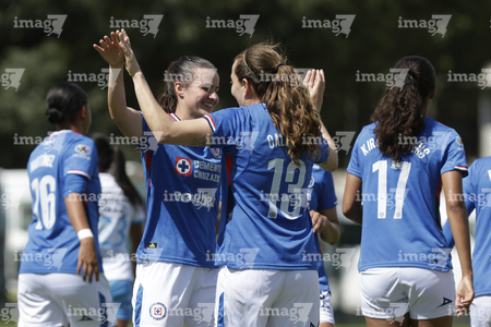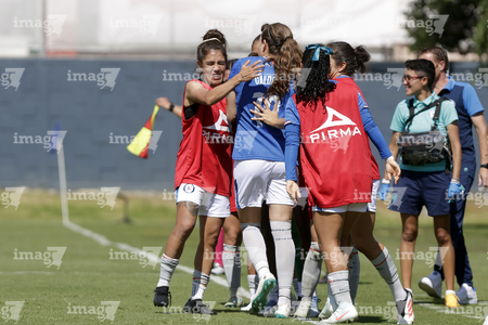 Puebla, Puebla, 21 de septiembre de 2025. Jugadoras de Cruz Azul en festejo de gol, durante el partido correspondiente a la jornada 12 del torneo Apertura 2025 de la Liga BBVA MX Femenil, entre el Club Puebla y la Máquina Celeste del Cruz Azul, realizado en el Club Alpha. Foto: Imago7/Mireya Novo