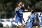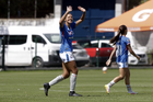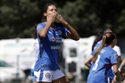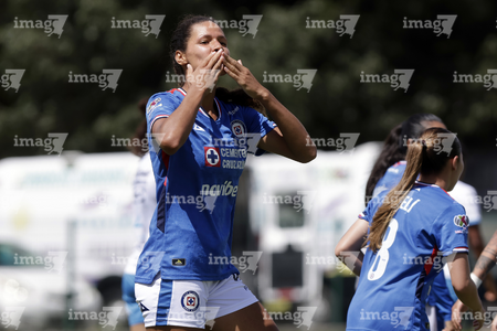 Puebla, Puebla, 21 de septiembre de 2025. Aerial Chavarin en festejo de gol, durante el partido correspondiente a la jornada 12 del torneo Apertura 2025 de la Liga BBVA MX Femenil, entre el Club Puebla y la Máquina Celeste del Cruz Azul, realizado en el Club Alpha. Foto: Imago7/Mireya Novo