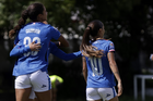 Puebla, Puebla, 21 de septiembre de 2025. Daniela Calderón y Diego Testas en festejo de gol, durante el partido correspondiente a la jornada 12 del torneo Apertura 2025 de la Liga BBVA MX Femenil, entre el Club Puebla y la Máquina Celeste del Cruz Azul, realizado en el Club Alpha. Foto: Imago7/Mireya Novo