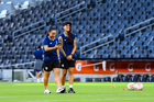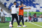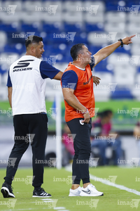 Monterrey, Nuevo León, 22 de septiembre de 2025. Sergio Santana, auxiliar técnico y Óscar Torres, director técnico, durante el partido correspondiente a la jornada 12 del torneo Apertura 2025 de la Liga BBVA MX Femenil, entre los Rayados del Monterrey y los Tuzos del Pachuca, realizado en el estadio BBVA. Foto: Imago7/