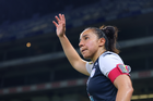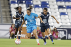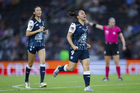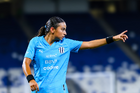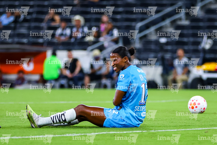 Monterrey, Nuevo León, 22 de septiembre de 2025. Jermaine Seoposenwe en lamento, durante el partido correspondiente a la jornada 12 del torneo Apertura 2025 de la Liga BBVA MX Femenil, entre los Rayados del Monterrey y los Tuzos del Pachuca, realizado en el estadio BBVA. Foto: Imago7/ Nora Guerrero